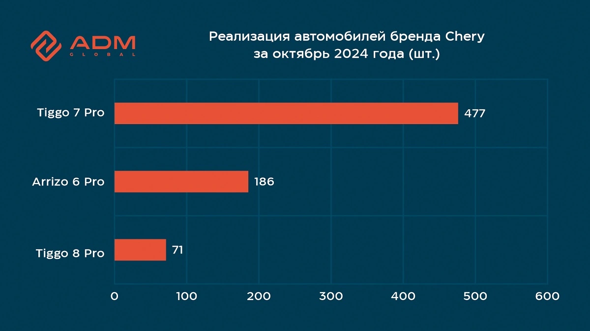 По итогам октября 2024 года в Узбекистане было реализовано 734 автомобиля марки Chery, что на 15,8% больше по сравнению с сентябрем текущего года.